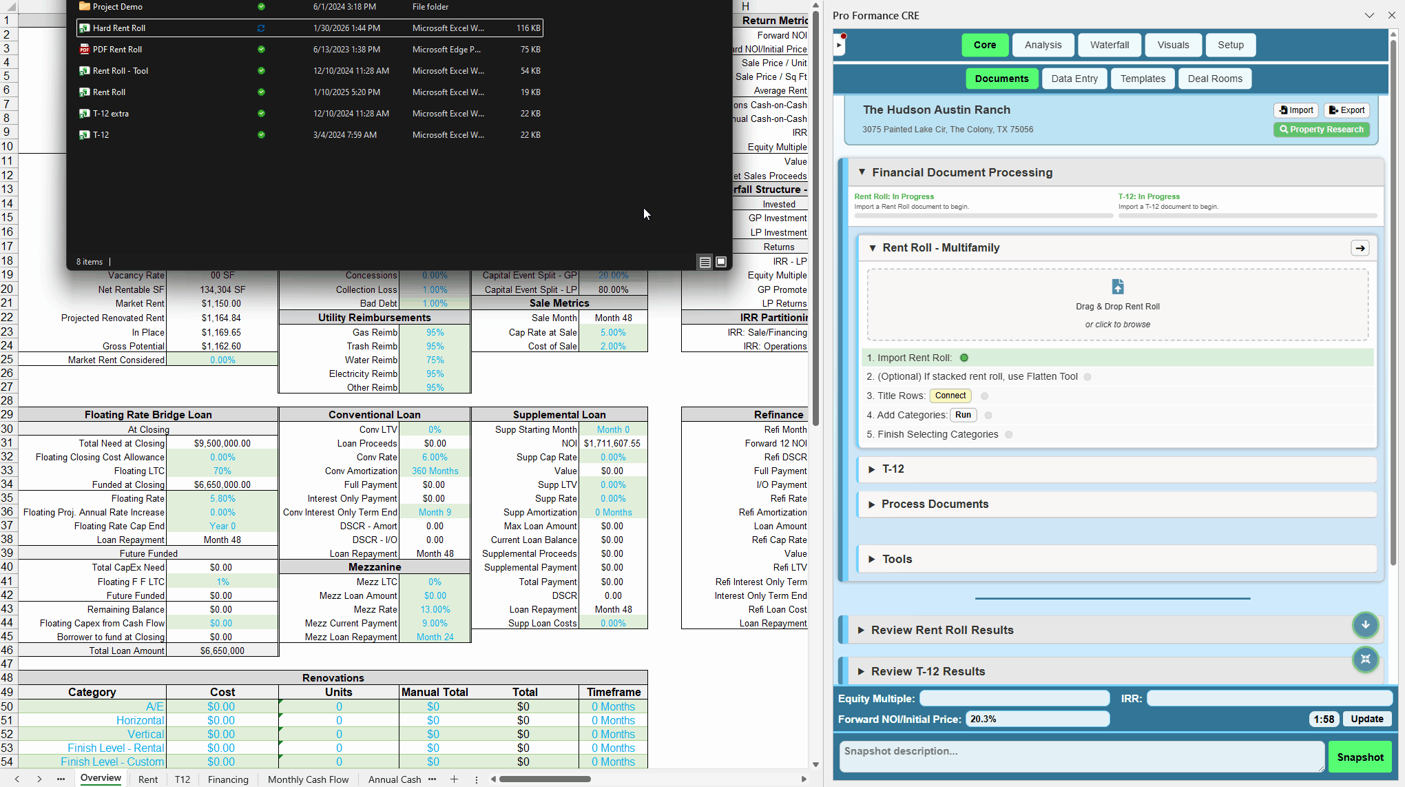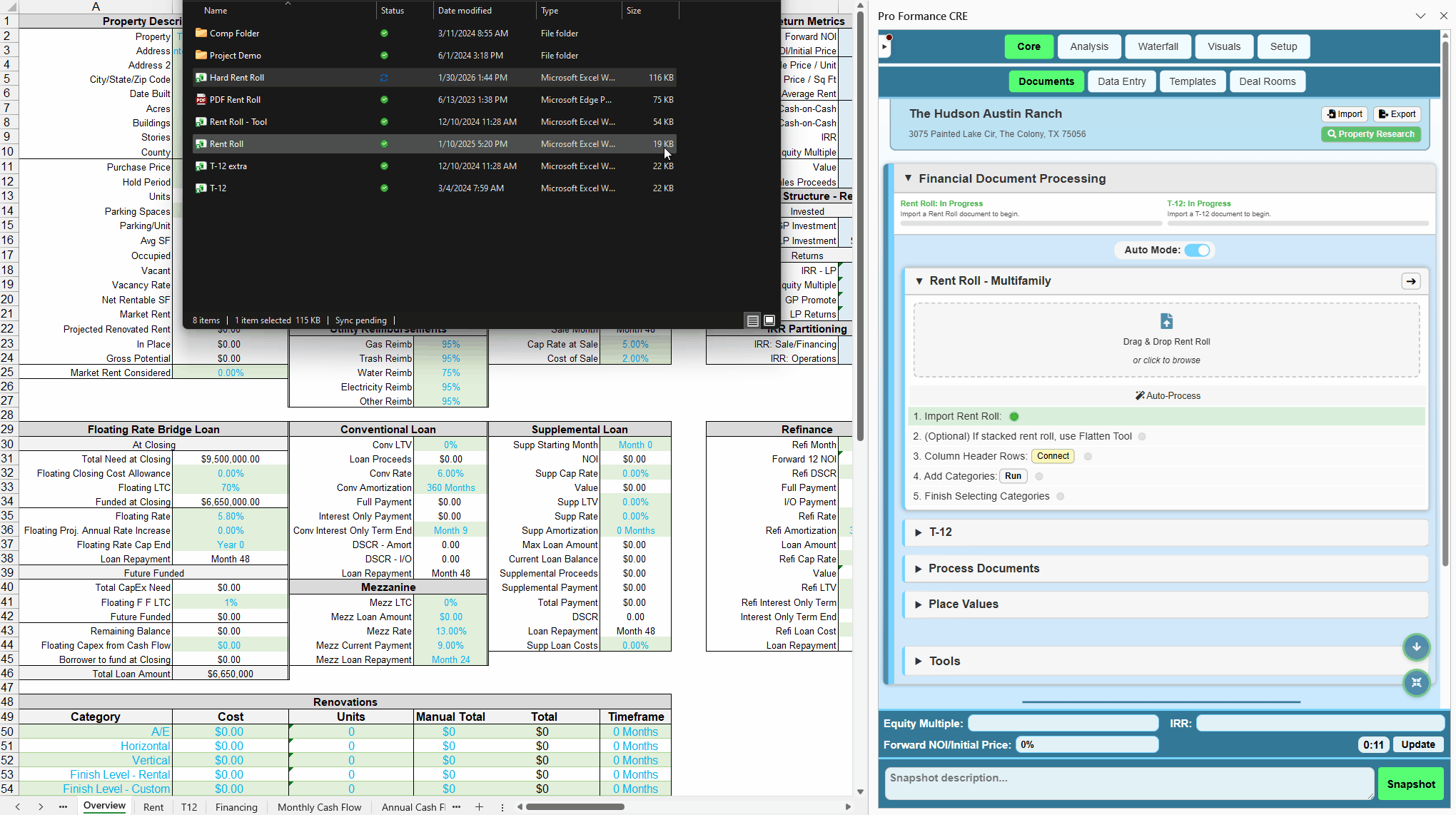 Excel on the left, Pro Formance CRE on the right