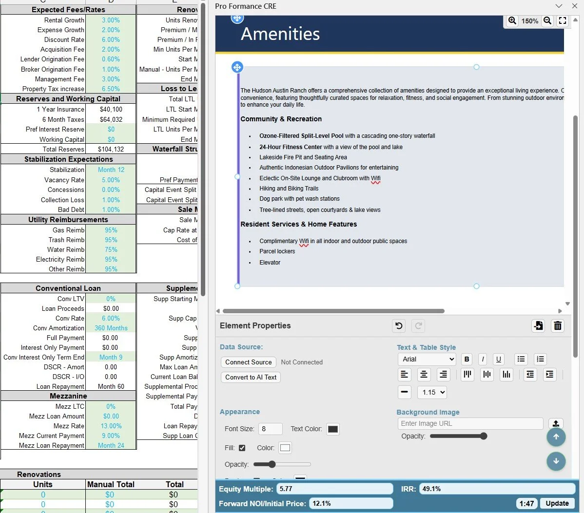 With Pro Formance CRE, it’s seamless to create well-informed drafts for your slide deck.