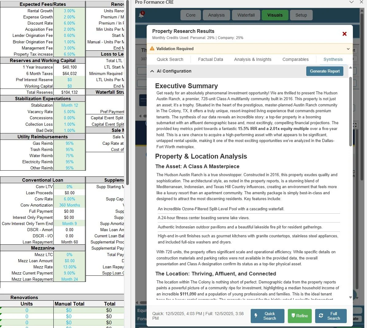 With Pro Formance CRE, you can get in-depth research from a single click.